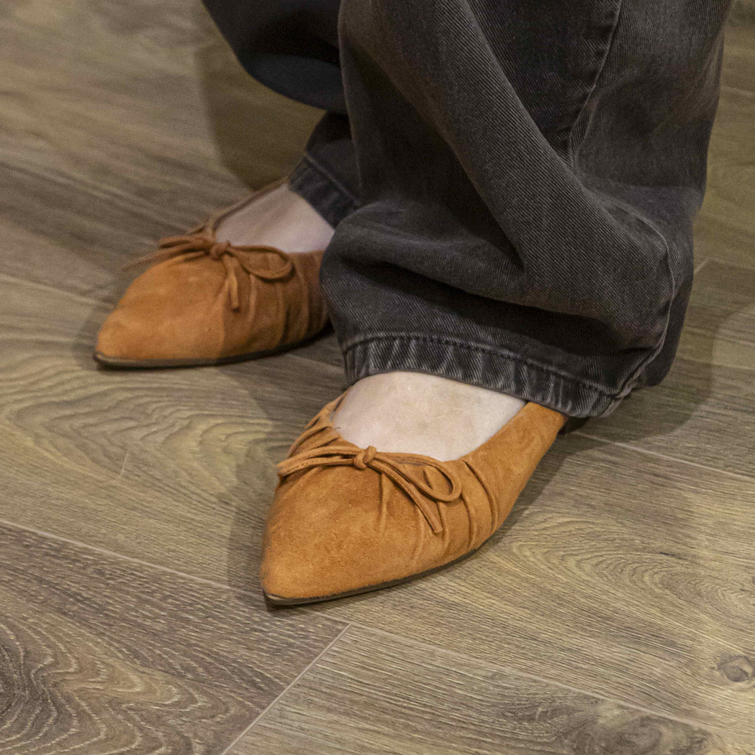 Ballerina in camoscio arancione con arricciatura