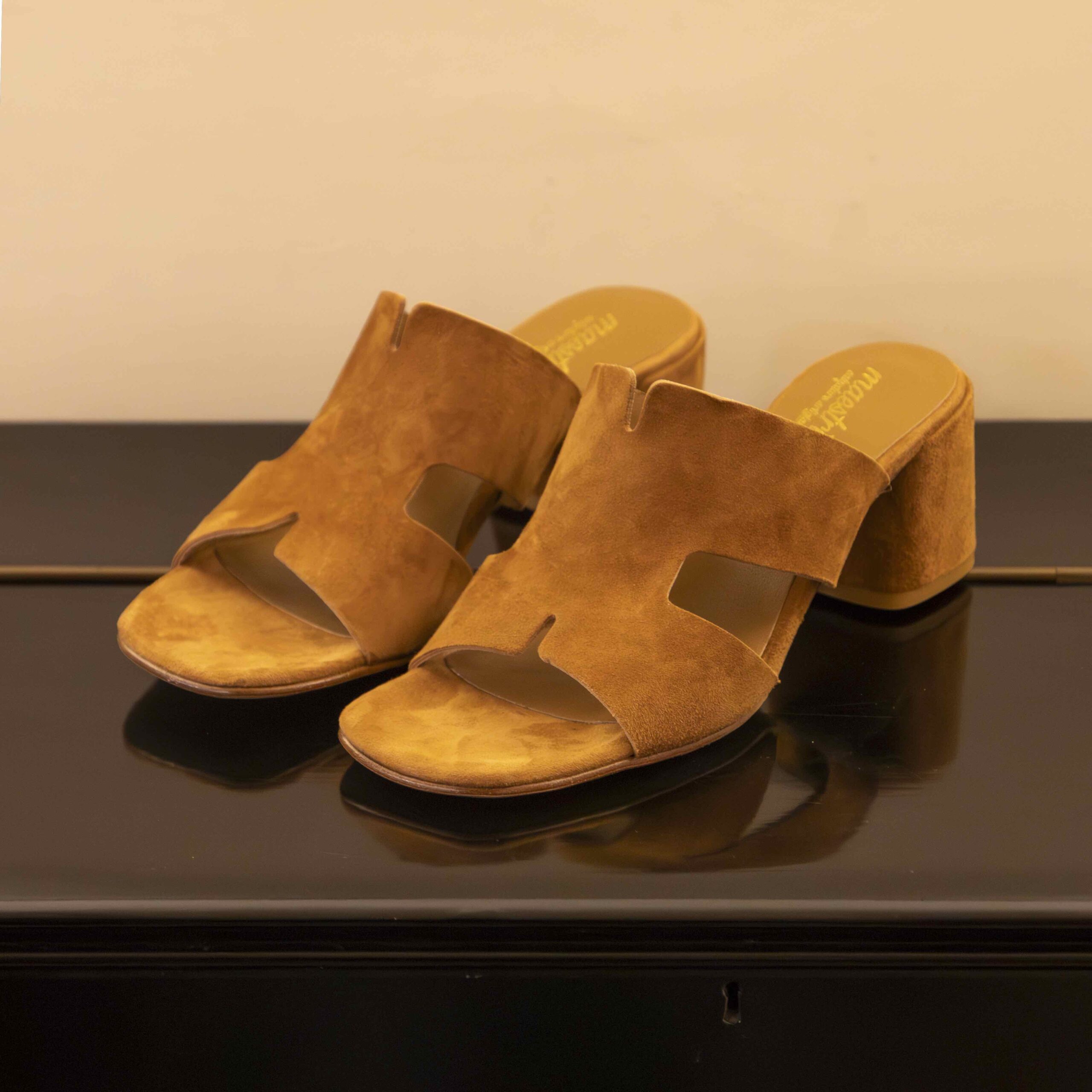 Sabot in camoscio cuoio / tacco 6
