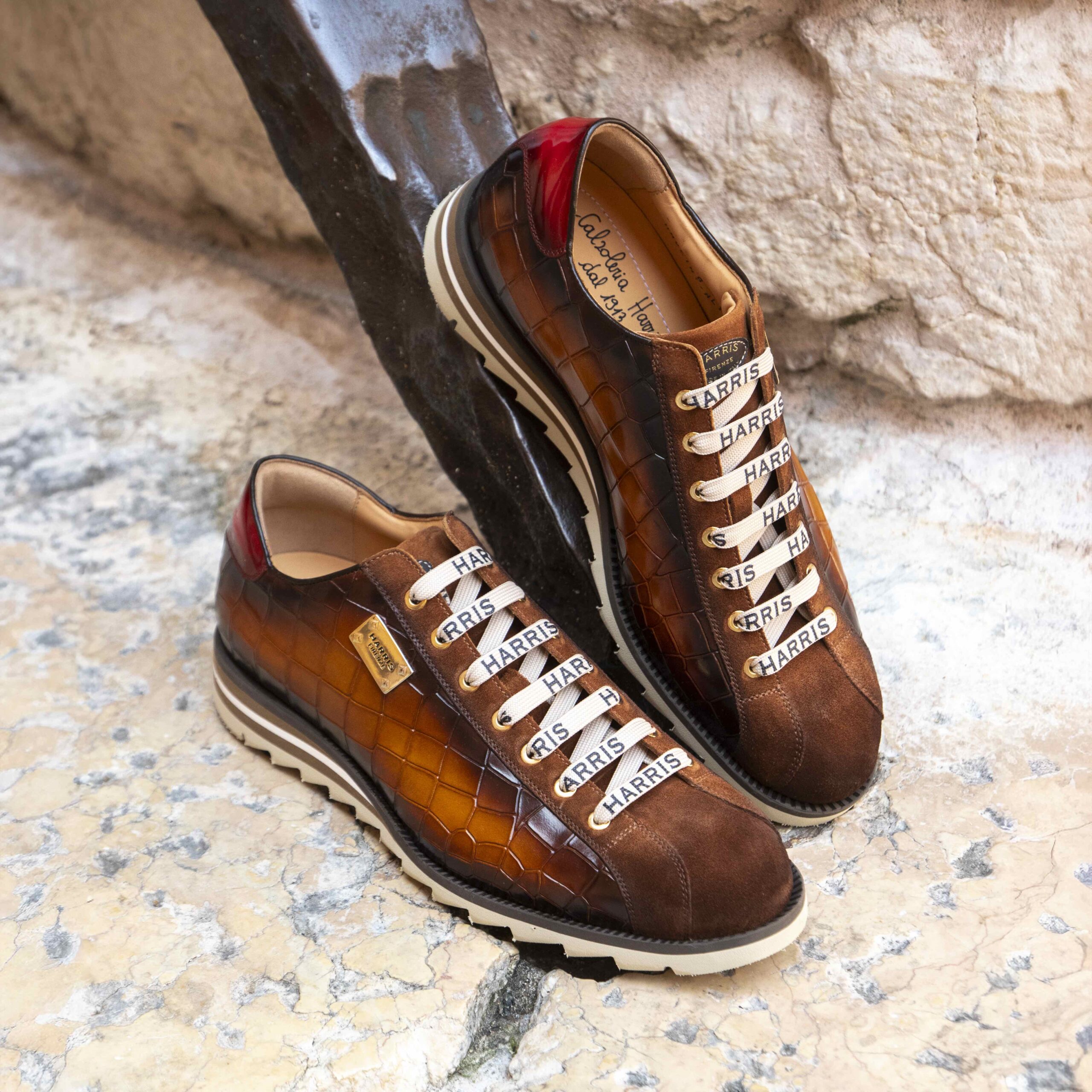 Sneakers HARRIS camoscio bruciato/pelle stampata cocco