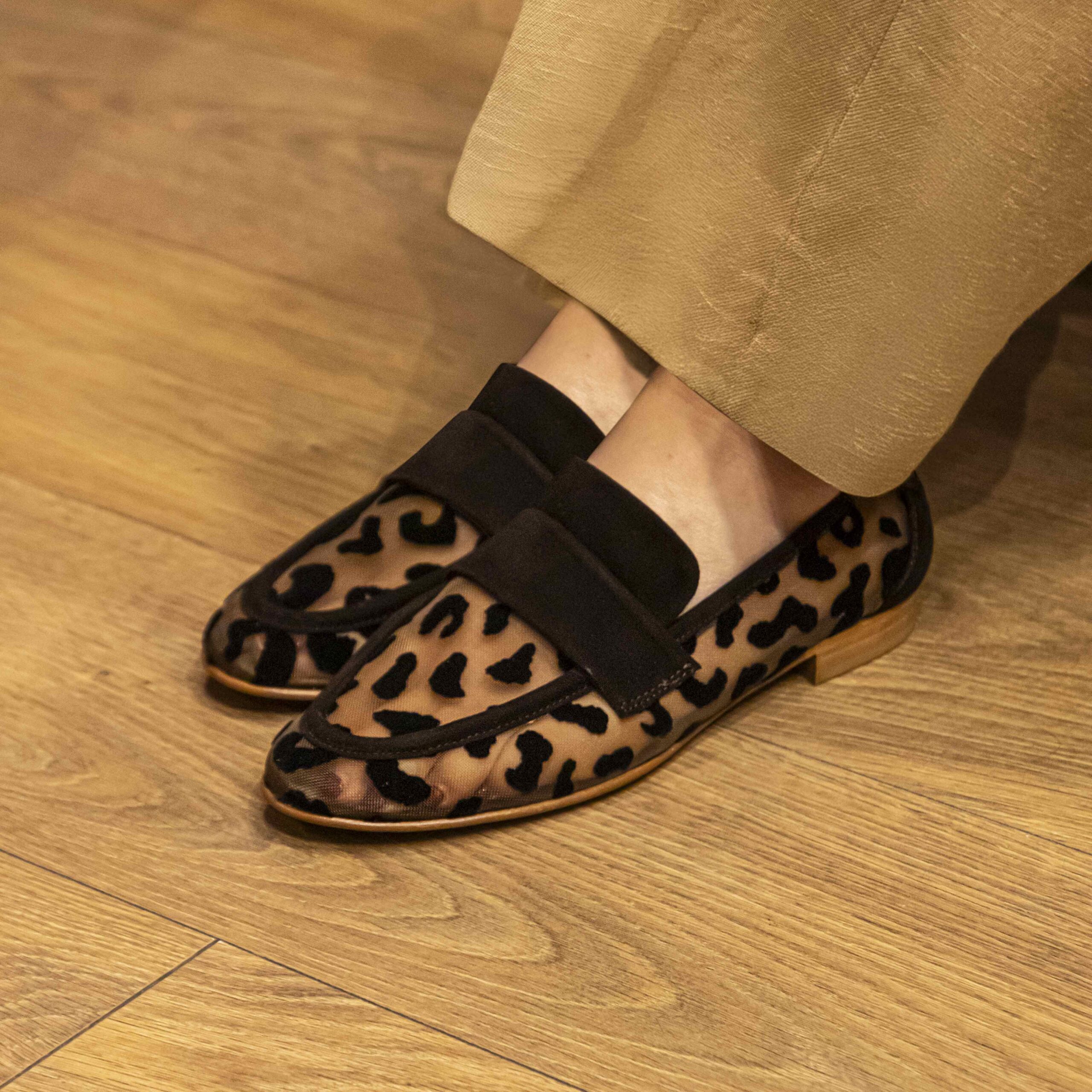 Mocassino testa moro con effetto maculato in microrete e camoscio