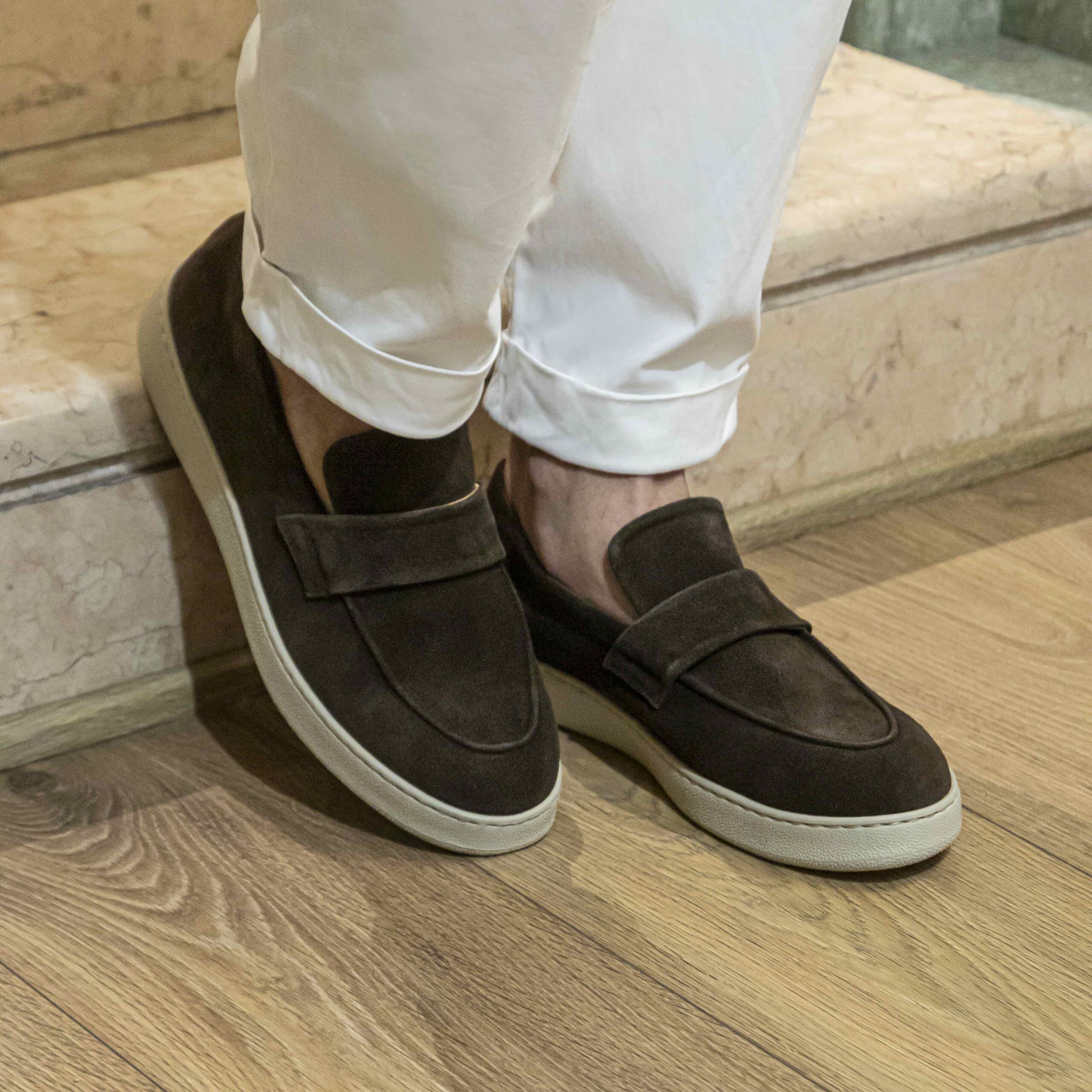 Slip-on con fascetta in camoscio testa moro