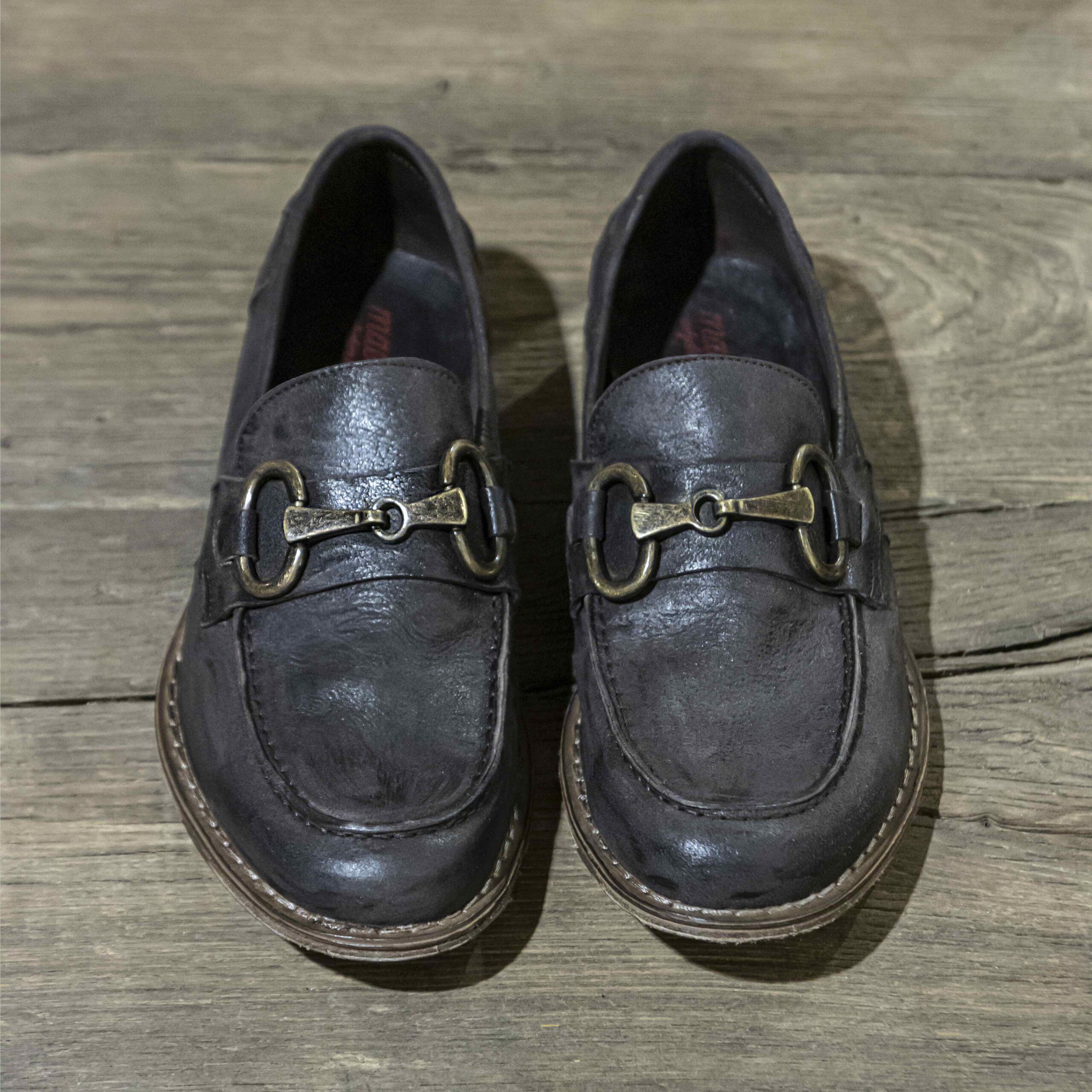 Mocassino con morsetto in pelle testa moro effetto vintage