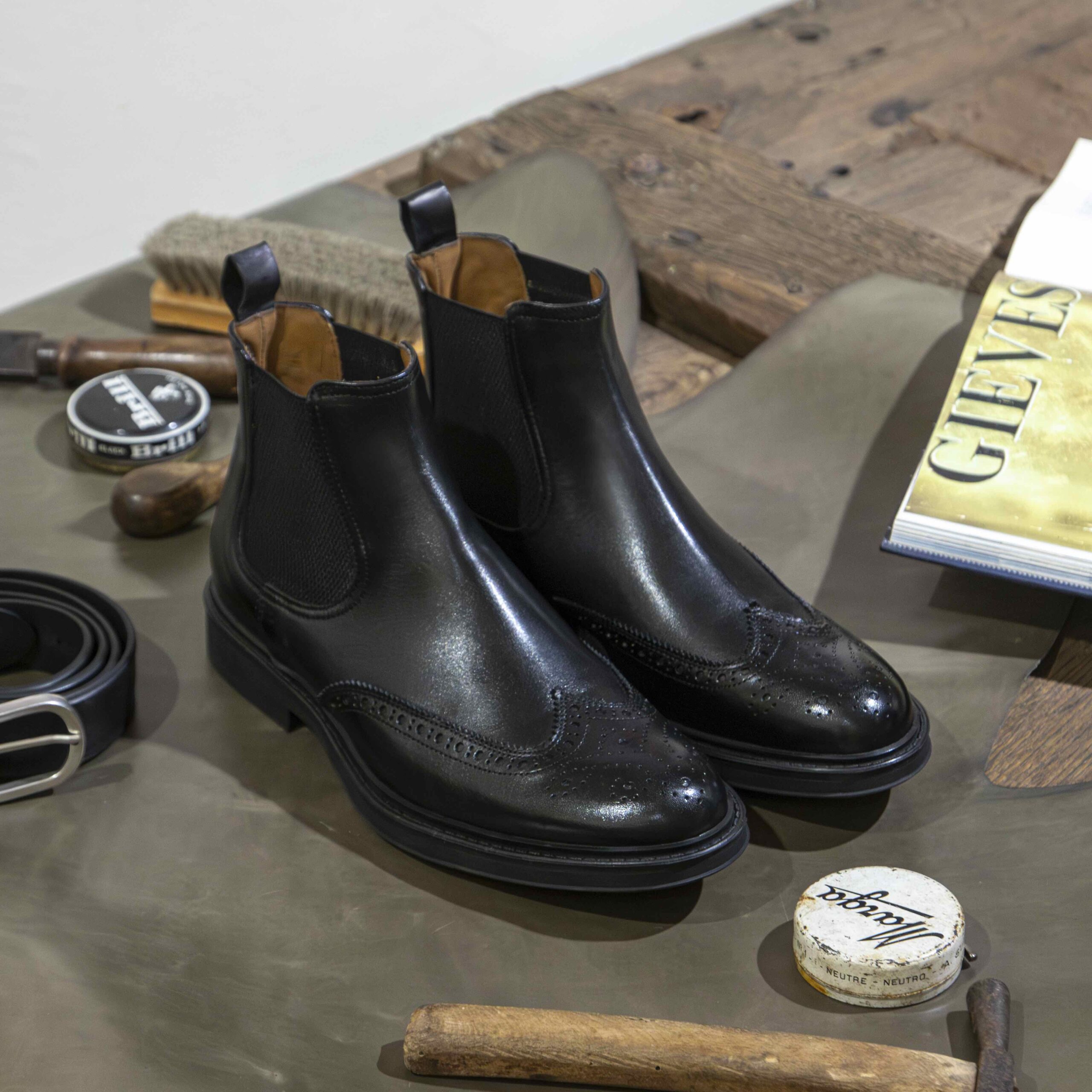 Chelsea Brogue neri in pelle