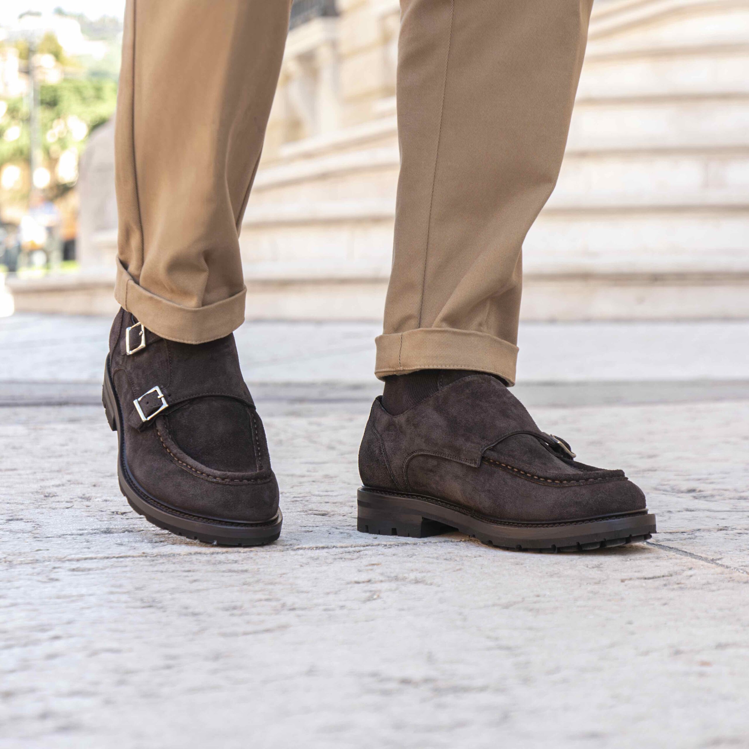 Doppia fibbia scamosciata testa moro / fondo roccia