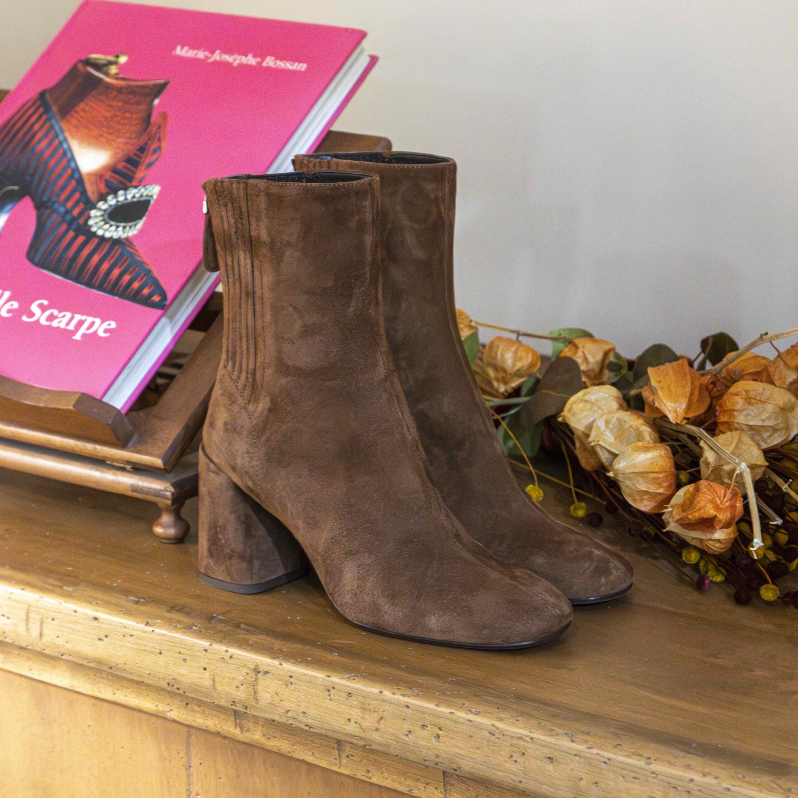 Tronchetto scamosciato color cuoio con tacco
