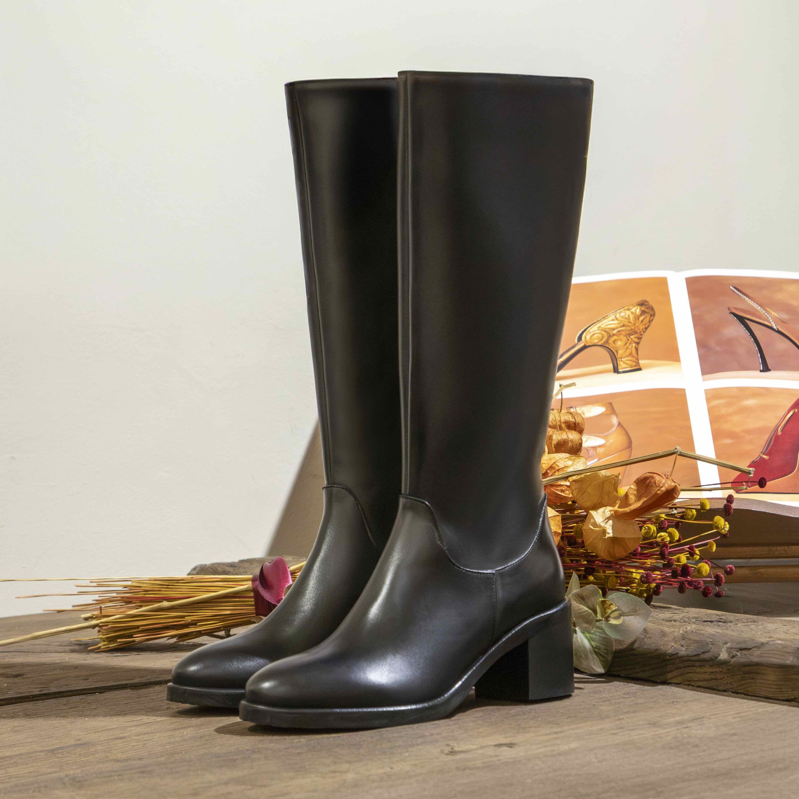 Stivale nero in pelle con tacco
