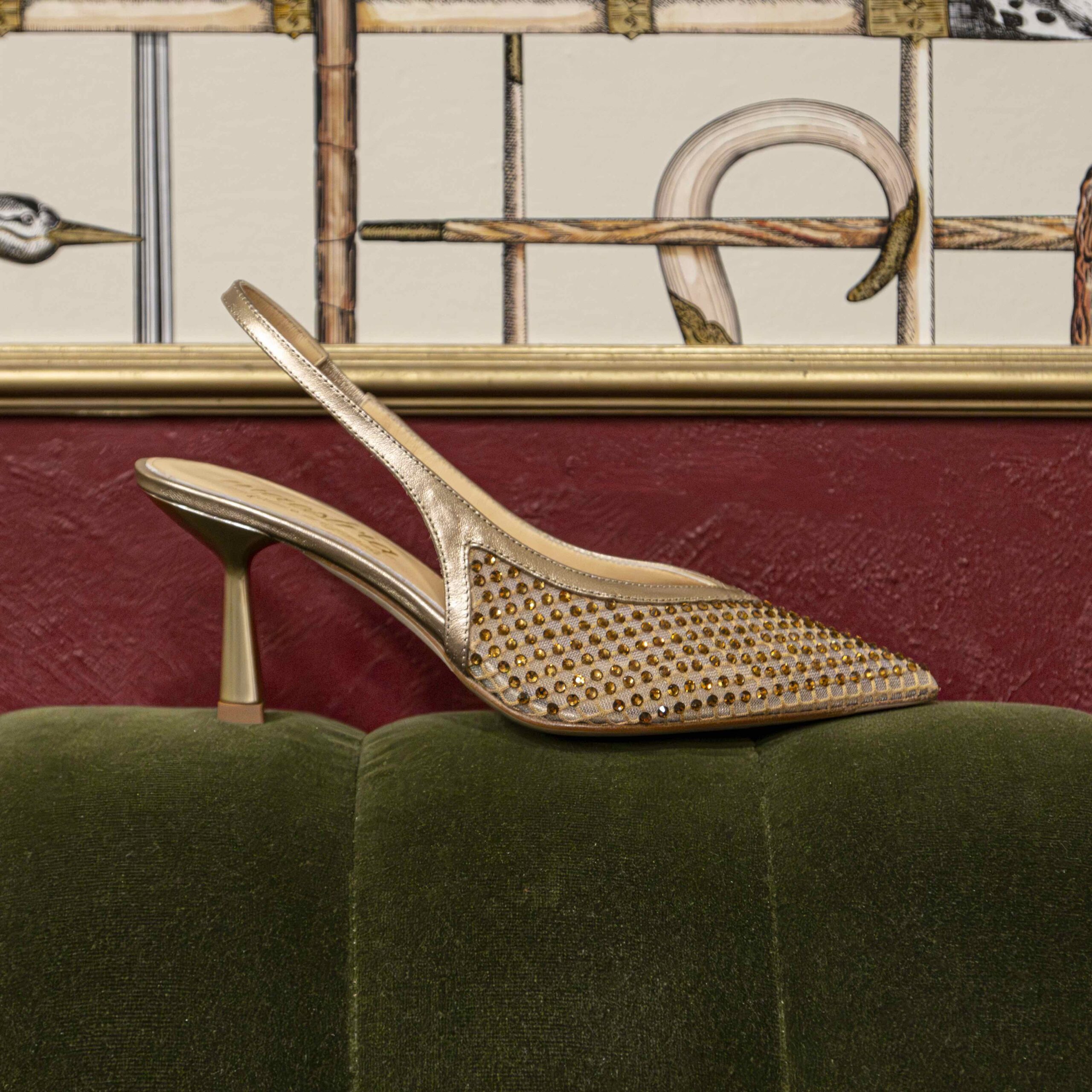 Slingback in microrete gold con cristalli / tacco 7