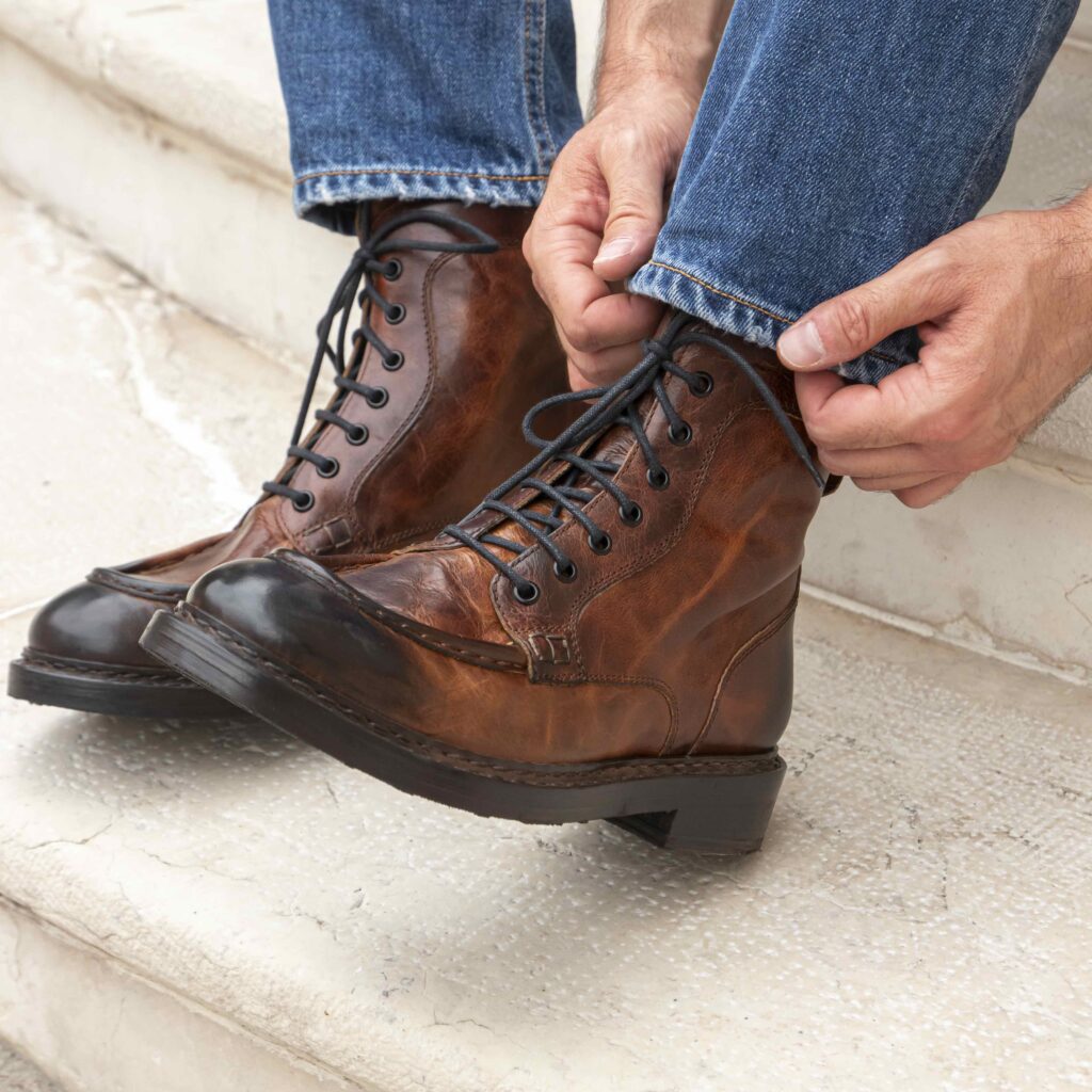 Stivaletto stringato in pelle effetto vintage Ti piace questo modello? Ogni pezzo è realizzato a…
