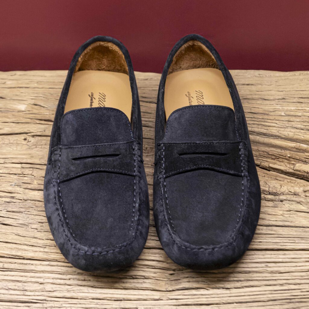 Penny loafer in camoscio blu Ti piace questo modello? Ogni pezzo è realizzato a mano…