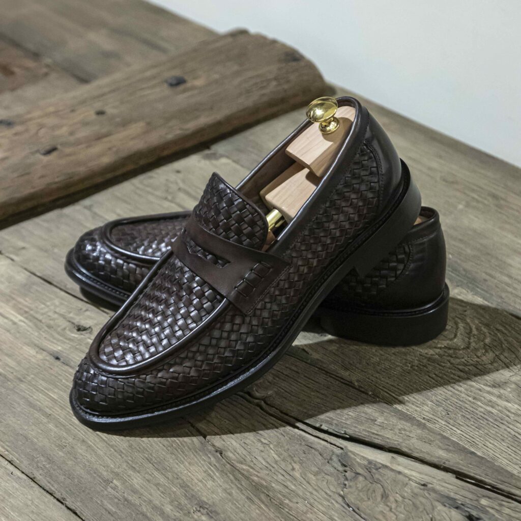 Mocassino con fascetta in pelle intrecciata testa moro